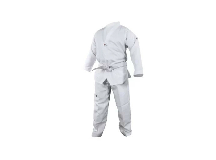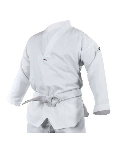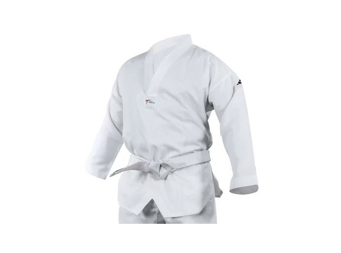 Kimono de taekwondo 80% polyester, 20% coton. Toile texturée, possible avec et sans marquage. Pour l’entrainement des amateurs, approuvé par World Taekwondo. Tailles : 100 à 200 cm.