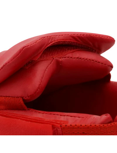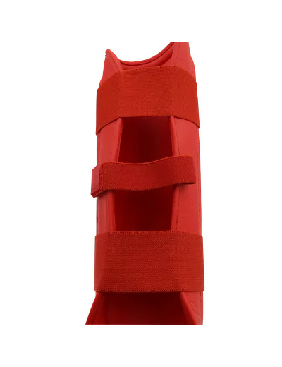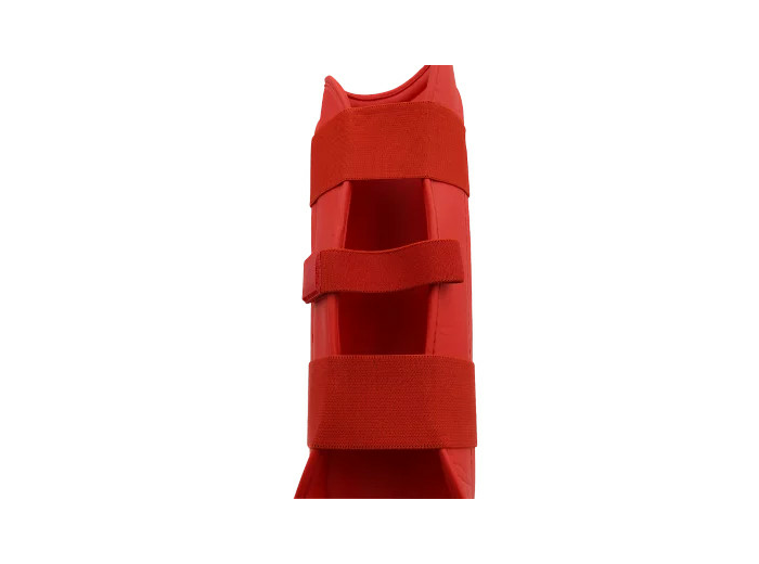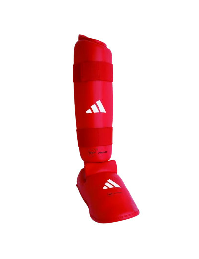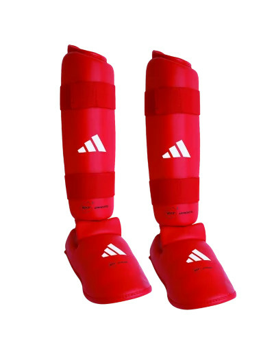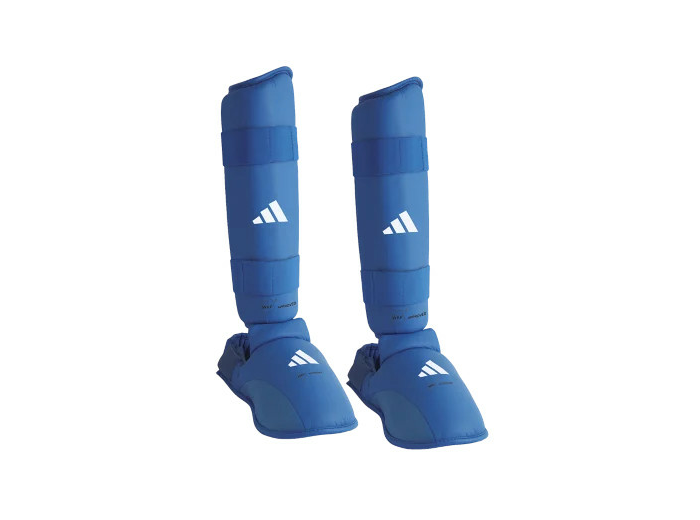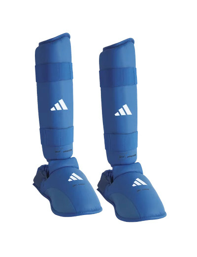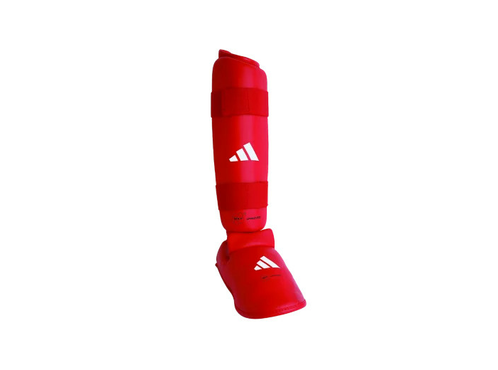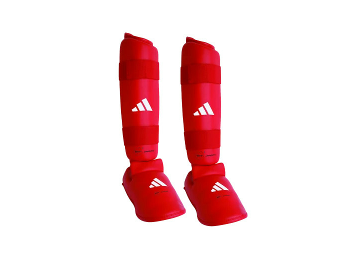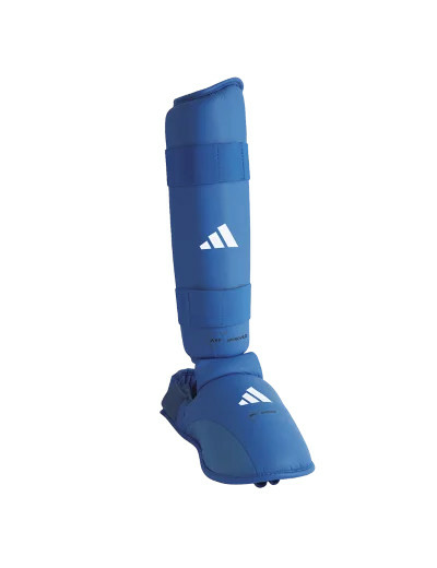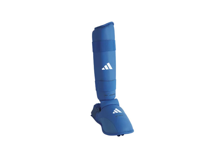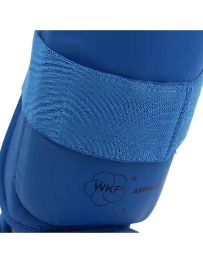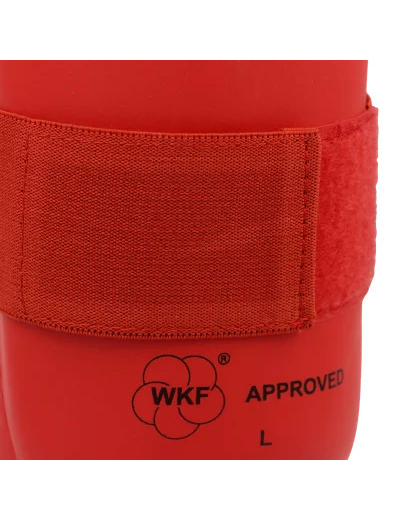 Protège-tibias et pieds officiel "World Karate Federation" et de la Fédération Française de Karaté. Intérieur en mousse EVA souple. Extérieure en PU résistant. Partie renforcée en cuir sur la partie intérieure du pied. Attache par triple bande élastique et scratch à l’arrière. Tailles : du XXS au XL.