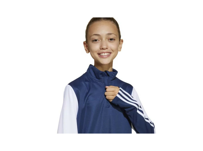 Haut de football en maille double 100% polyester recyclé. La technologie AEROREADY évacue la transpiration et le demi-zip te permet de l’enfiler et de le retirer rapidement. Coupe standard.
