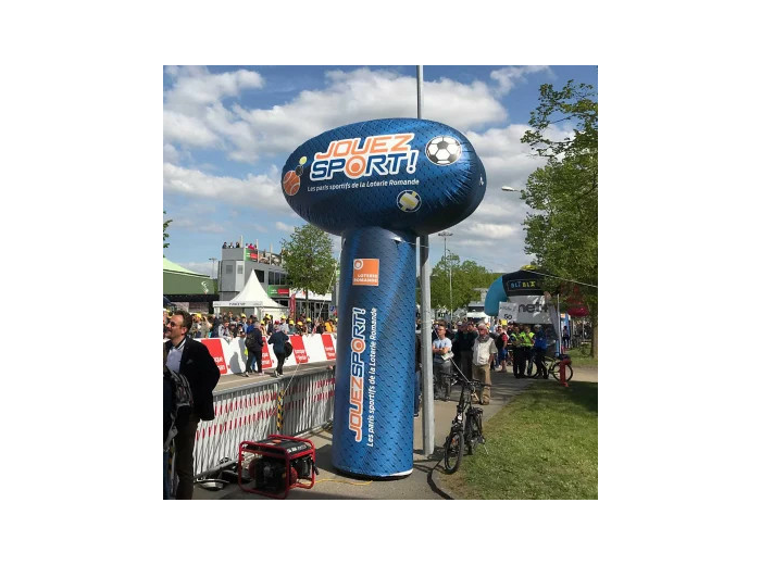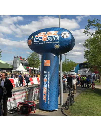 Structure colonne gonflable. forme ovale à son sommet qui se voit de loin et permet de facilement signaler sa présence. Hauteur : 5m. Poids : 25 kg. Produit personnalisable.