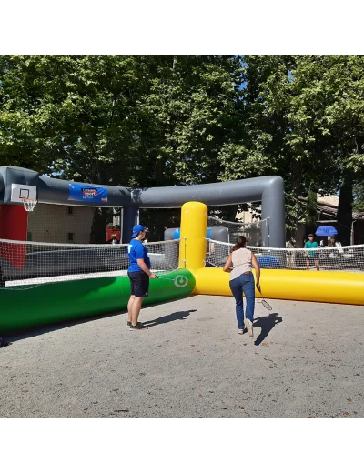 Espace multisports et multi-terrains proposant une grande diversité de pratiques sportives (football, rugby, basketball, handball, mini volley, badminton). Jusqu’à 20 joueurs simultanément. Dimensions : 14 x 13 x 3,60 m. Produit personnalisable.
