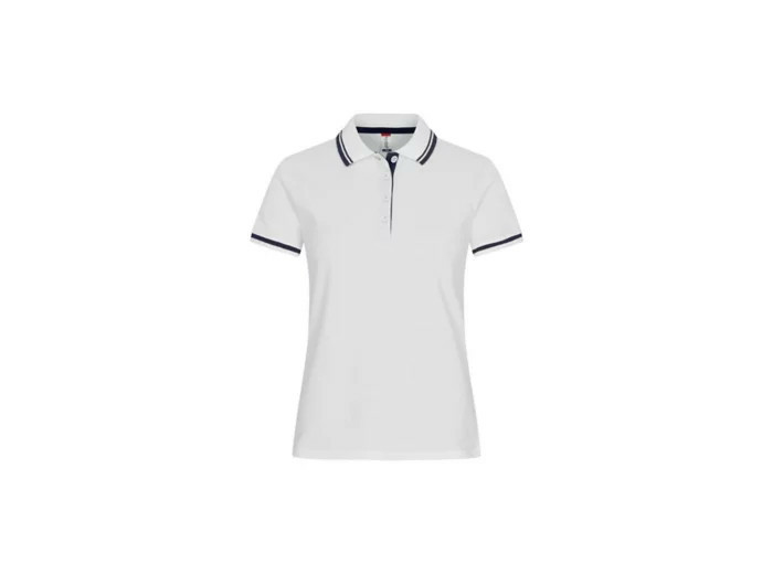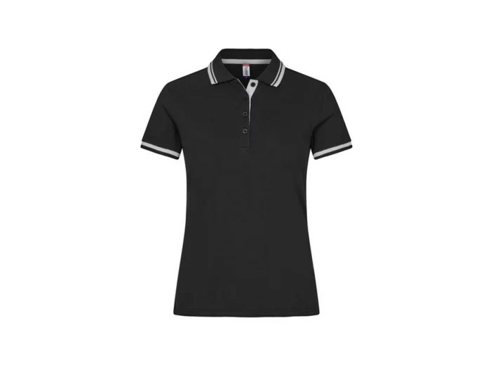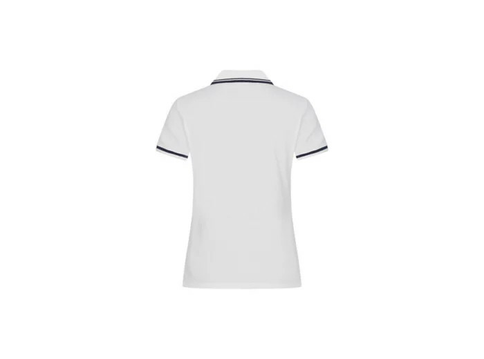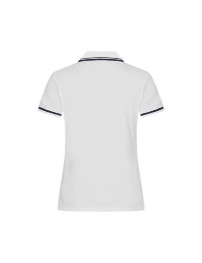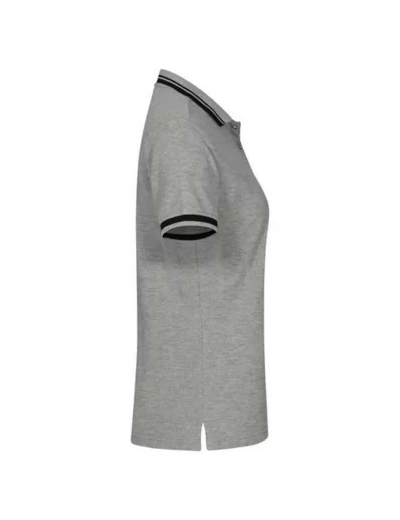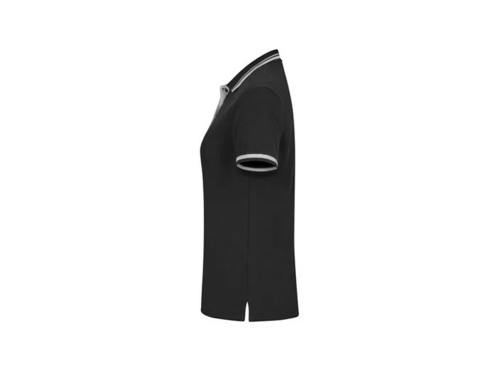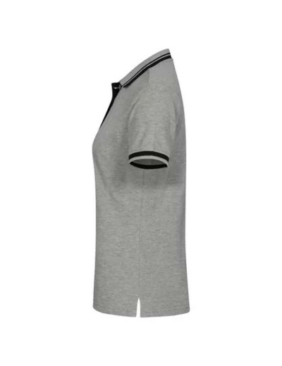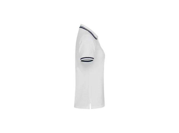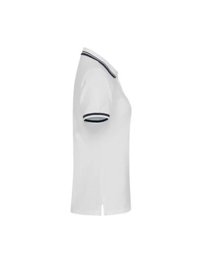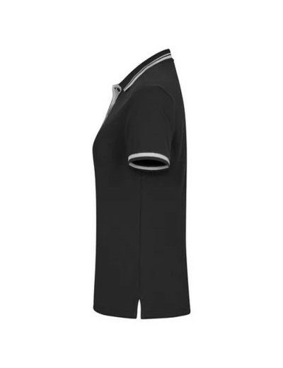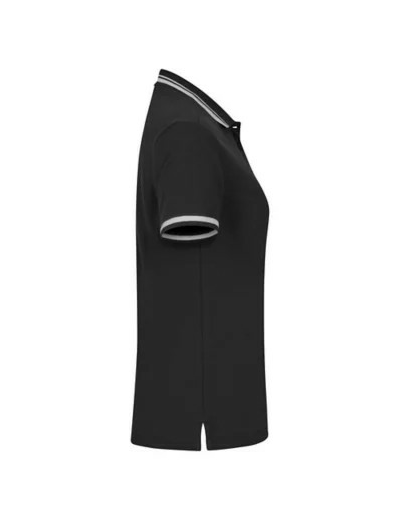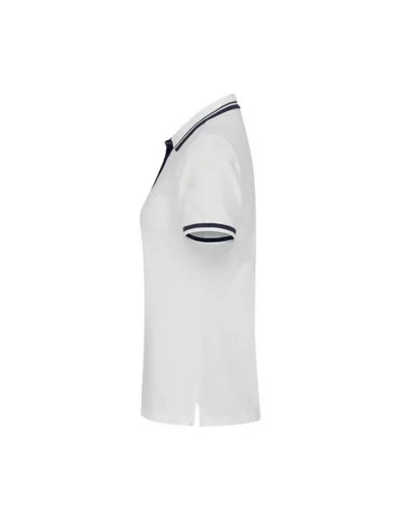 Polo femme avec une bande de couleur contrastée sur le col et les manches - Détails fentes latérales - 3 boutons ton sur ton - Bande de propreté renforcée - étiquette facilement amovible - Maille piquée
