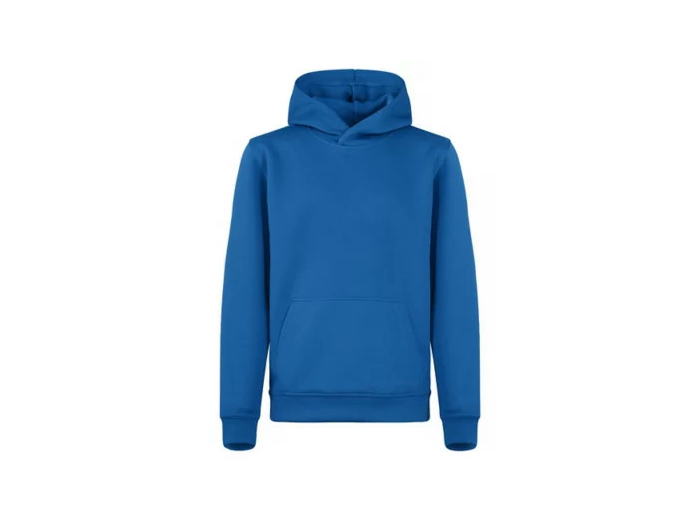 Sweatshirt capuche Enfant en 100% polyester Spun Dyed : technologie révolutionnaire de teinture du polyester - Poche kangourou - bande de propreté en chevrons - bords côtes aux poignets - Pas de cordon de serrage pour plus de sécurité enfant - Smartphone sytem - Etiquette facilement détachable