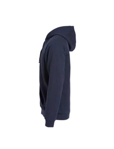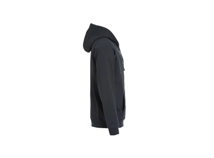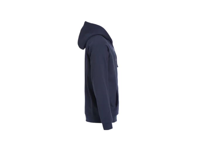 Sweatshirt capuche full zip avec poches zippées - lavage 60° - smartphone system - capuche doublée polyester - cordon de serrage bicolore plat - zip central métal - finitions en bords côtes 2x2 aux poignets et taille - coutures flatlocks ton sur ton - croix brodée sur les coutures de poches - Taille européenne