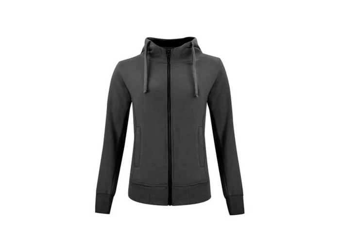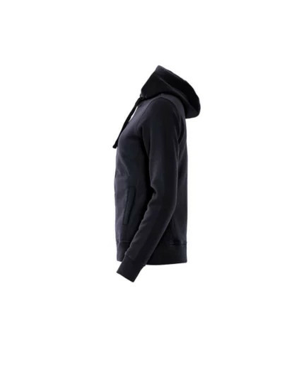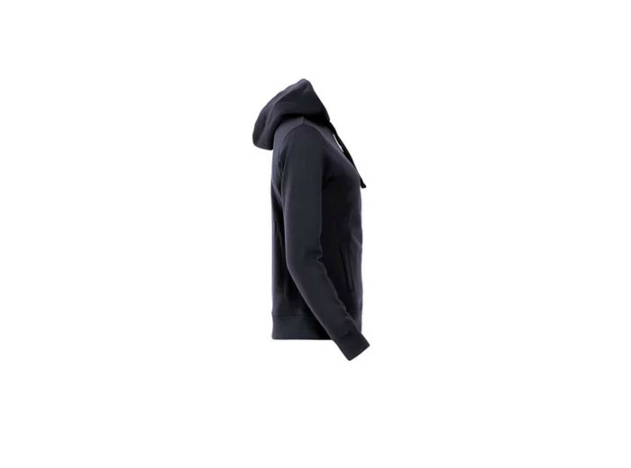Sweatshirt capuche full zip avec poches zippées - lavage 60° - smartphone system - capuche doublée polyester - cordon de serrage bicolore plat - zip central métal - finitions en bords côtes 2x2 aux poignets et taille - coutures flatlocks ton sur ton - croix brodée sur les coutures de poches - Taille européenne
