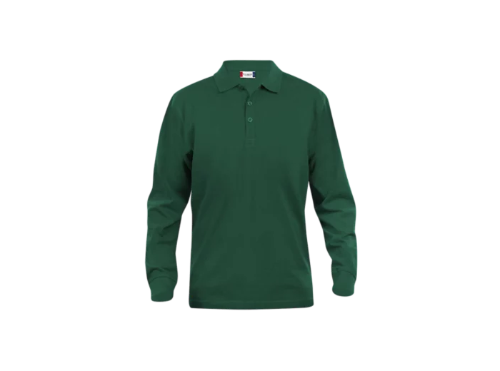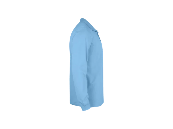 Polo piqué manches longues - 3 boutons ton sur ton - lavage 60° - poignets droits - fentes d'aisance latérales - doubles coutures - bande de propreté - taille européenne