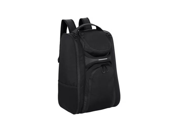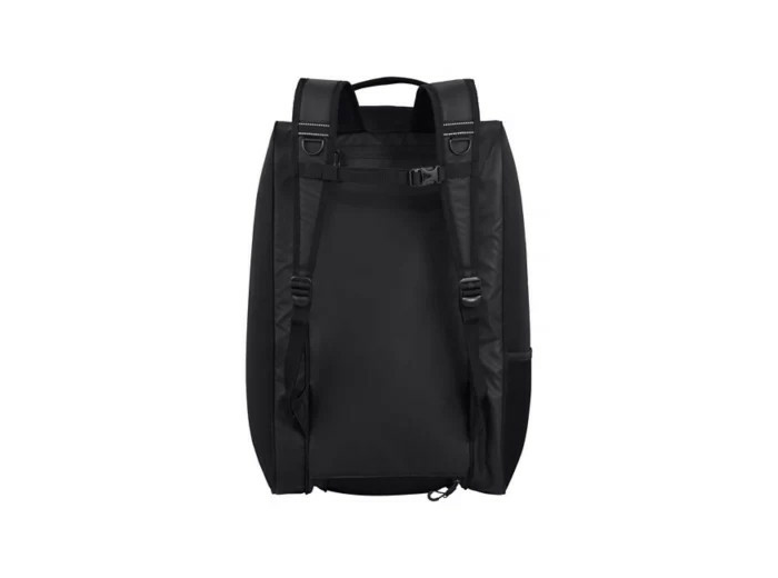 Sac isotherme 1 vrai sac doublé d'un sac à dos 2 possibilités de le porter par le haut ou sur le devant - 2 bretelles + sangle pectorale pour une meilleure stabilté - 2 très larges poches sur le côté dont 1 isotherme parfaite pour les boissons ou la nourriture - Ouverture en U sur le devant pour un accès facilité et un chargement optimal - Compartiment ventilé pour les chaussures ou les serviettes - Poches zippées s/ le dessus a/ un porte-clefs intérieur - 1 poche anti-vol au dos sous les bretelles - 1 poche en mesh sur le côté - Détails en matière réflective -Dimensions : 54x28x34cm Volume ≈ 51 L