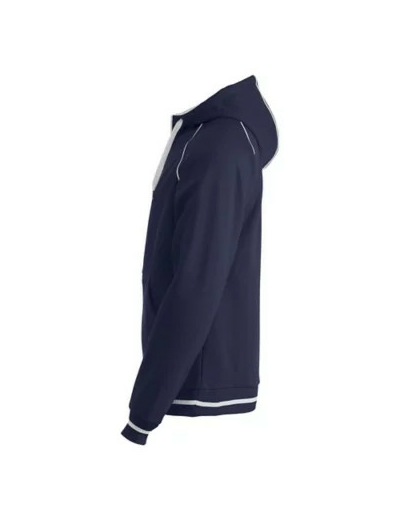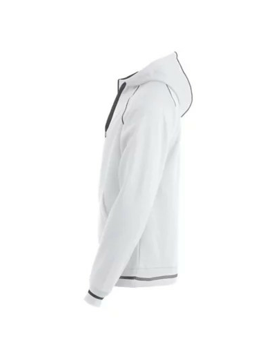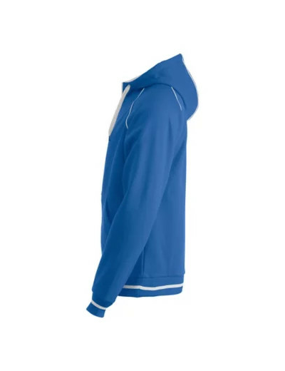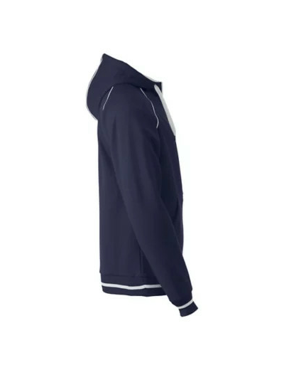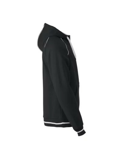 Sweatshirt technique full zip à capuche – Unisexe - Intérieur molleton brossé en coton et extérieur finition piqué en polyester - Idéal pour toutes les activités en extérieur – Liserés contrastés sur col et poignets – Cordon de serrage et zip également contrastés - Ouverture zippée dans la capuche pour personnalisation