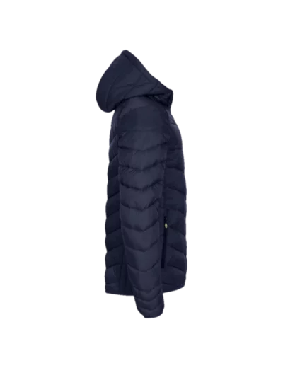 Veste doudoune Junior chaude mais légère - 100% polyamide recyclée - Capuche amovible - 3 poches extérieures zippées - 2 poches intérieures - Bande élastique taille + poignets - Passe écouteurs
