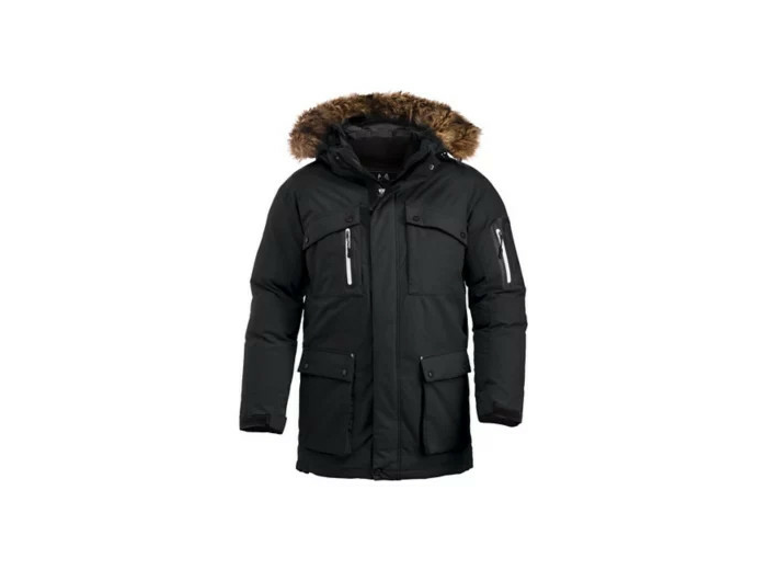Parka “Expédition” unisexe - Très chaude même pour un froid polaire - Zip central sour rabat avec ouverture haut et Bas - fermeture à glissière brodée - Poche porte-feuilles sur ouverture centrale pour un accès rapide - Zips de poches extérieures contrastés et étanches - Capuche amovible - Fourrure synthétique également amovible - Toutes les poches extérieures sont doublées tricot pour maintien au chaud optimal - finition double poignets