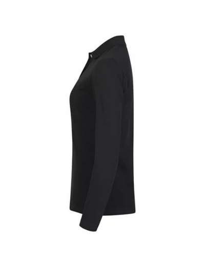 Polo manches longues - stretch - sans boutons aux poignets - boutons nacrés (2 pour l'homme et 3 pour la femme ) - Bande de cou en chevron - fentes latérales renforcées - étiquette facilement amovible pour un rebranding facile - pré-rétréci et traité aux enzymes.