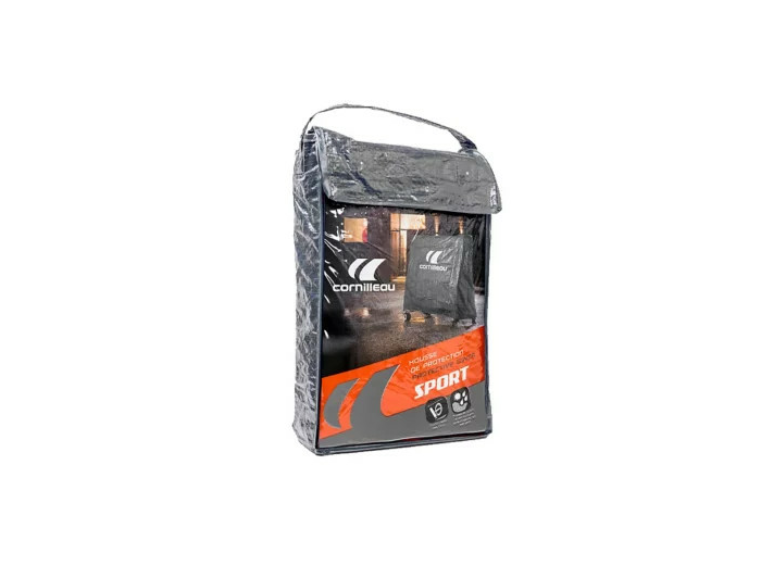 Housse de protection en PVC marquage Cornilleau avec système d’attache. Dimensions : 158 x 25 x 135 cm.