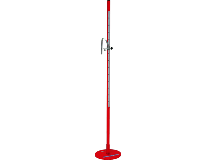 Modèle avec déflecteur : poteaux équipés de taquets électrozingués avec accroches pour élastique et déflecteur évitant à la barre d’être entraînée par le sauteur, pour une meilleure sécurité. Graduation de 0,60 à 2,20 m. Socle lourd. Garantie : 5 ans.