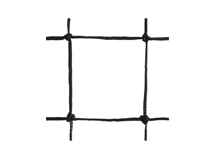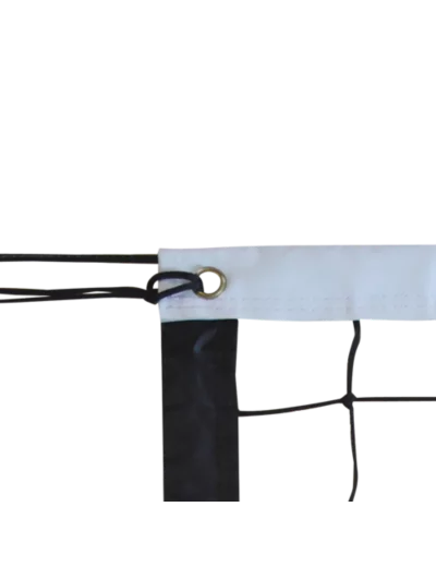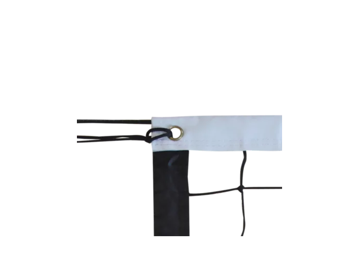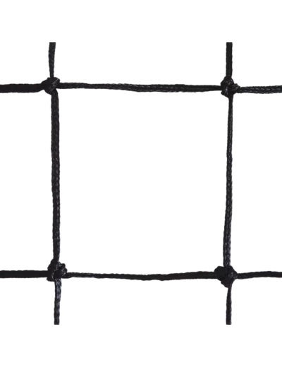 Utilisation : Entraînement. Dimensions : 9,50 x 1 m. Maille 100mm. Filet PE tressé. Ø du fil : 3mm simple. Coloris : Noir. Bande PVC blanche 110mm avec double coutures en haut et bandes PVC noires 70mm sur 3 côtés avec double coutures. Tension : Câble acier gaîné Ø6mm L.12,15m en haut et cordeau en bas.