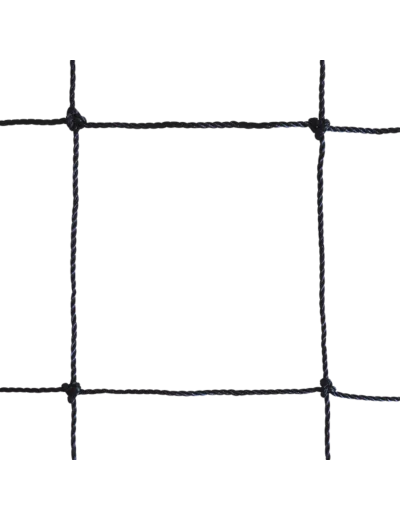 Filet de volley-ball, utilisation : Entraînement. Dimensions : 9,50 x 1 m. Maille 100mm. Filet PE câblé. Ø du fil : 2mm simple. Coloris : Noir. Bande PVC blanche 110mm avec double coutures en haut. Tension : Câble acier gaîné Ø6mm L.12,15m en haut et cordeau en bas.