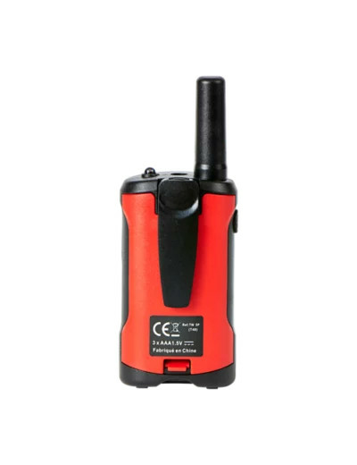 Caractéristiques : portée 5 km. Nombre de canal : 8. 3 piles AAA par talkie-walkie (non incluses).