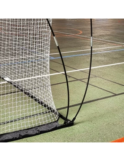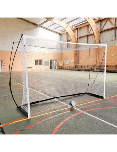 Ce but auto-lesté est spécialement conçu pour la pratique du futsal. Il se monte et se démonte en 2 minutes. Structure acier légère et résistante. Facile à transporter. Livré avec un sac de transport. Patins antidérapants sous la base du but pour protéger les sols d’intérieur. Filet blanc polyester 2,4 mm sans noeud, maille 5 x 5 cm. Dimensions : 3 x 2 m.