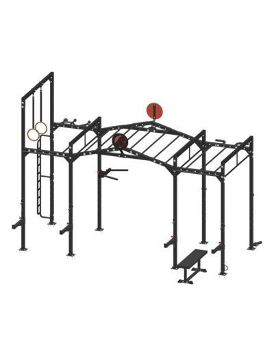 Le package Wings 2 est idéal pour démarrer votre zone de Cross Training. Inclus : 4 paires de supports barres, 2 bancs plats avec "safety spotters", une "dips bar", une plateforme plyo, 4 barres triangles, un espace haut pour anneaux, deux cibles, une échelle plate. Livré avec écrous de sécurité Nylstop®. Structure en acier 3 mm. Section de 7 x 7 cm. Perforation laser. Montage recommandé par minimum deux personnes. Ancrage au sol obligatoire par vis ou tige filetée avec scellement. Conception et fabrication 100% européenne. Réalisation de votre structure dans le coloris et la taille de votre choix avec le marquage de votre club. Dimensions : 498 x 194 x 275 cm. Poids : 550 kg.