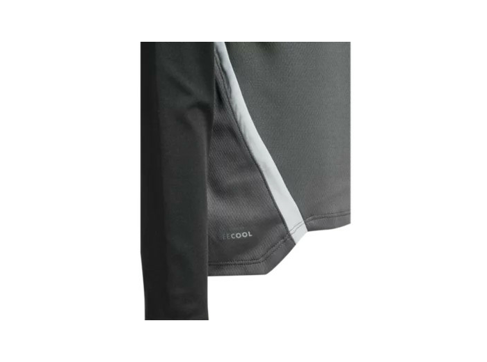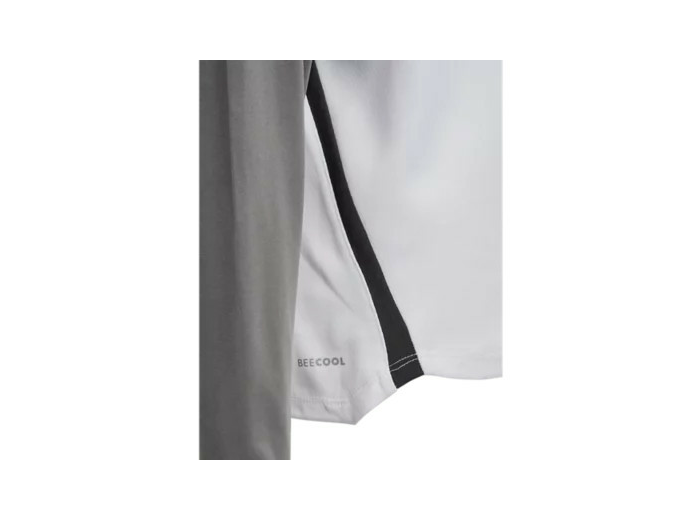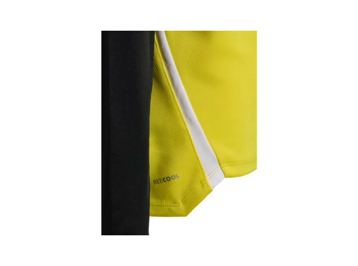 Sweat 1/4 zip avec 95 % de PES recyclé et 5% d’Elasthanne. Col montant, fermeture zippée. Bande chevrons sur les épaules. Tissu traitement ''BEECOOL'' pour plus de confort.