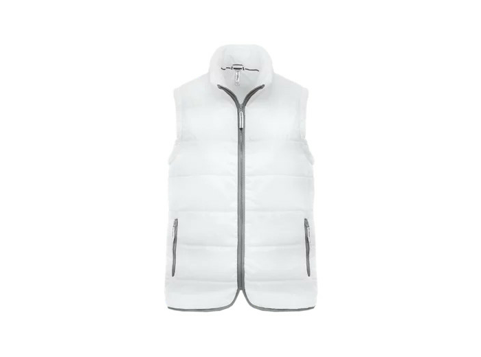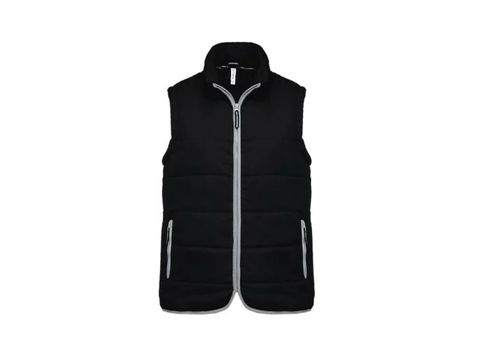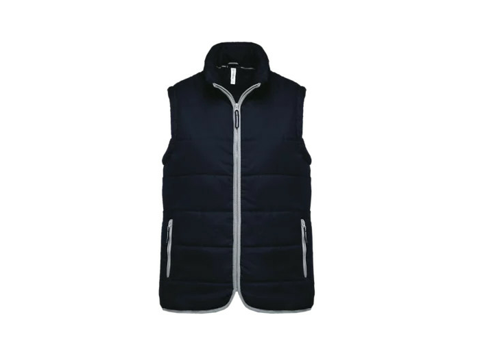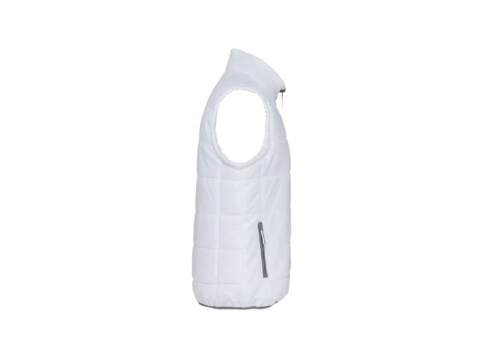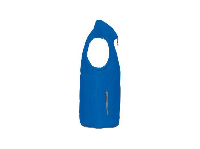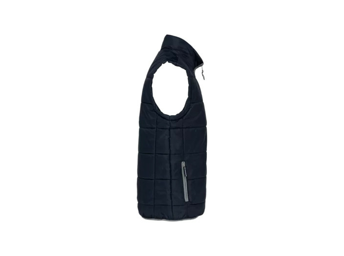 Extérieur : 100% polyester ripstop avec enduction acrylique. Garniture intérieure polyester. Doublure polyester 210T. Coupe moderne et confortable. 2 poches extérieures zippées. 1 poche intérieure avec bande auto-agrippante. Zip contrasté gris et finition bande contrastée grise devant, poches et bas de vêtement. 1 zip côté cœur et 1 zip au bas du vêtement pour accès personnalisation.