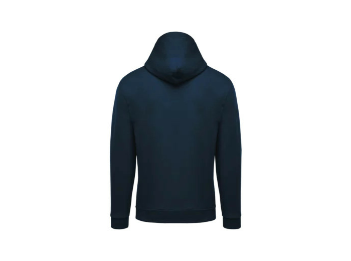 80% coton / 20% polyester. Molleton gratté. Manches montées. Capuche doublée. Poches Kangourou. Finition bord-côte bas de manches et de vêtement.
