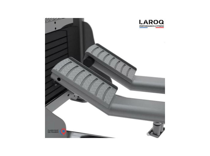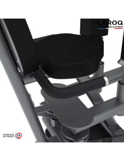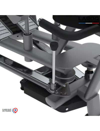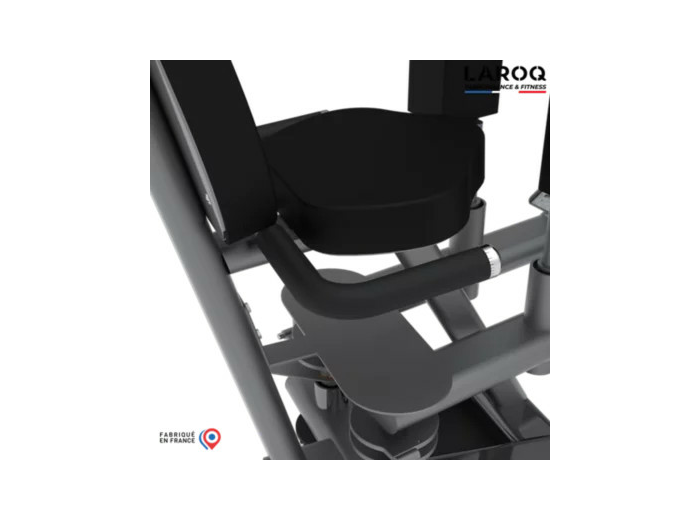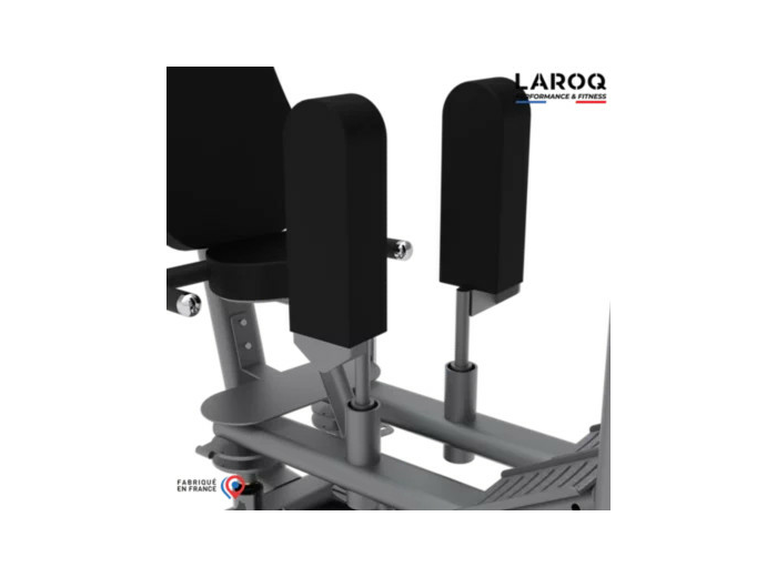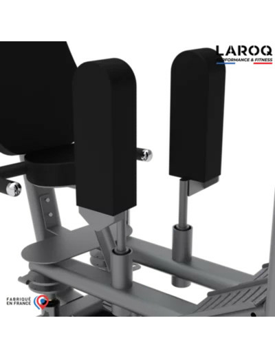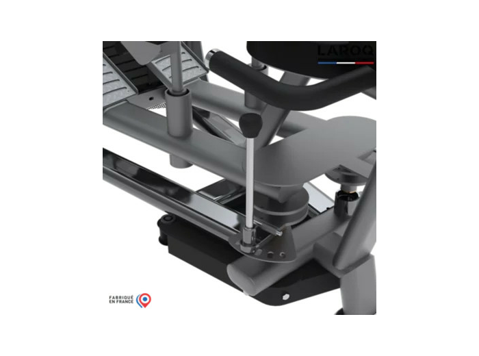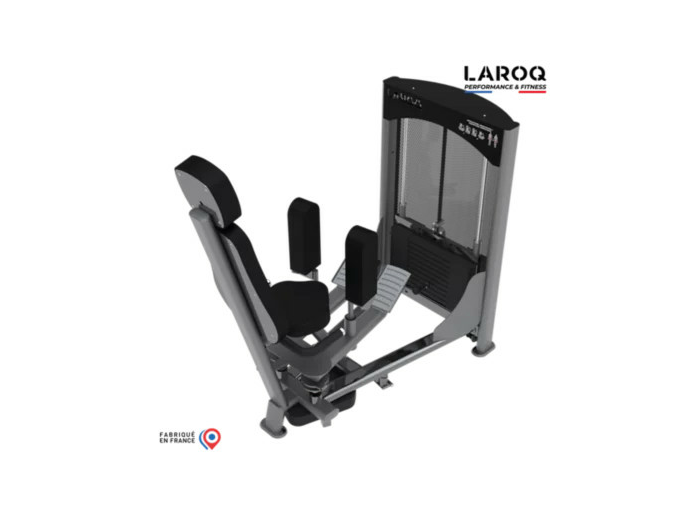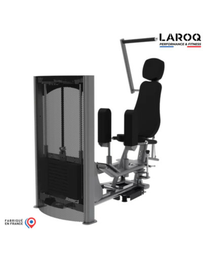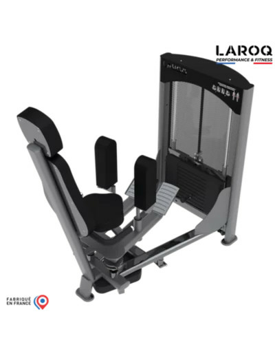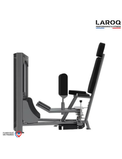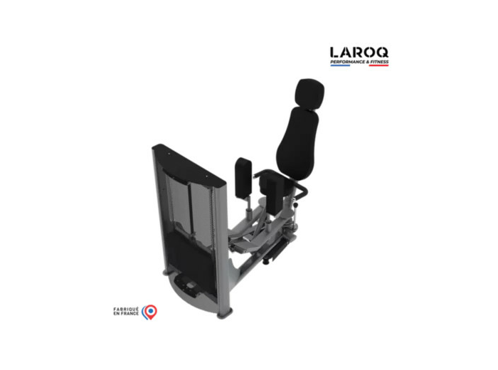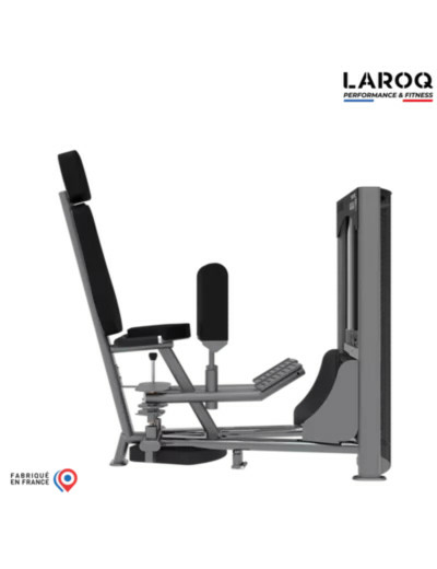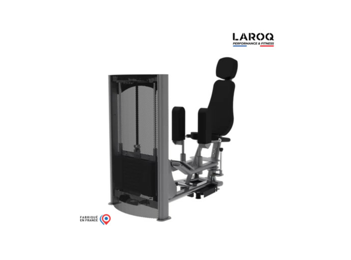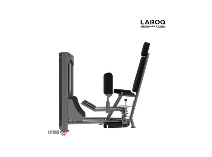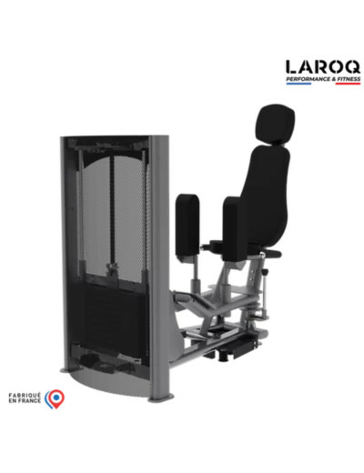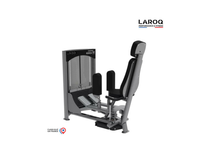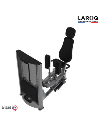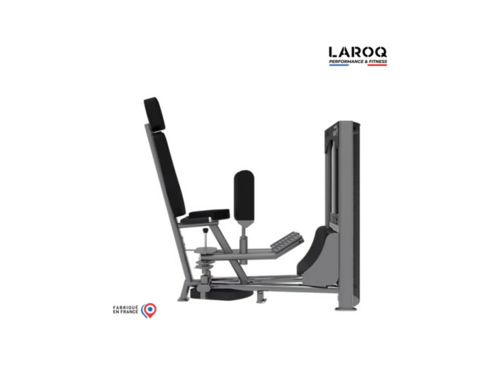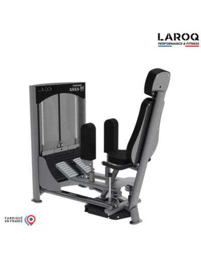 Travail des membres inférieurs en position assise par sollicitation des muscles intérieurs et externes de la cuisse. Charge automatique de 60 kg. Transmission de la charge par sangle haute résistance. Réglage de la charge de 5 kg en 5 kg à partir de la position de travail. Pictogramme de mouvement et consignes de sécurité inscrits sur la machine. Travail symétrique des jambes. Appui-pieds aluminium permettant de sécuriser la position de travail et de protéger la machine. Dimensions : 160/170 x 80 x 150/180 cm, 205 kg. Poids maximum utilisateur : 150 kg. Garantie : 5 ans. →Fiche Technique
