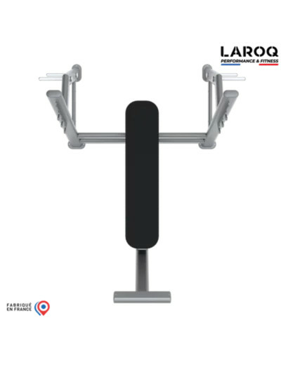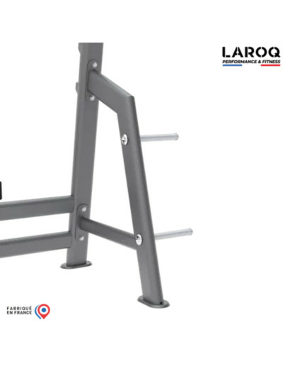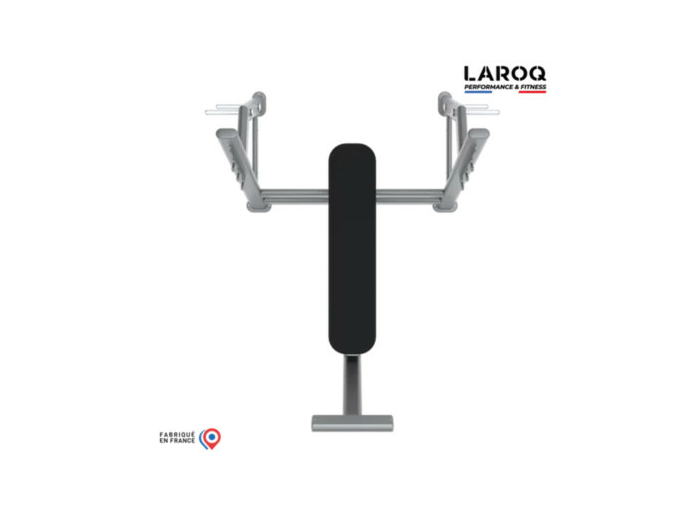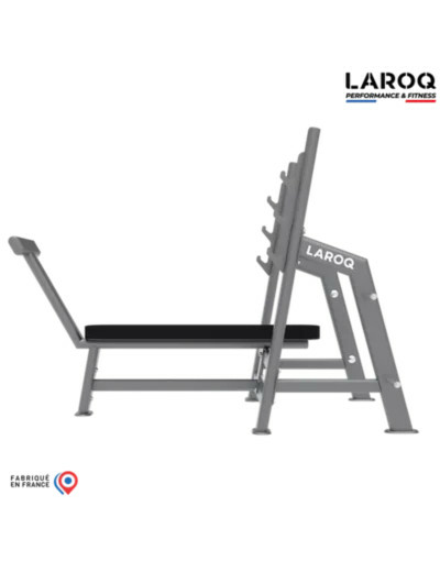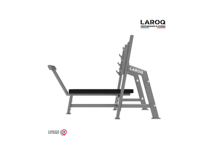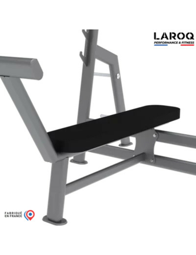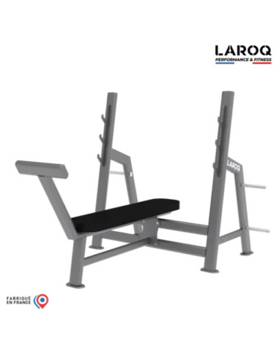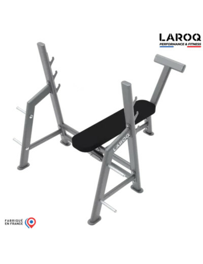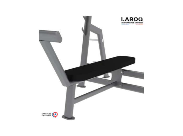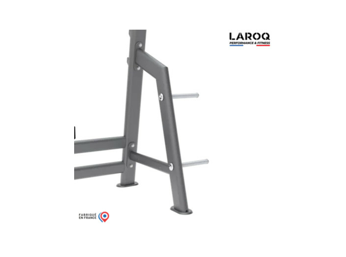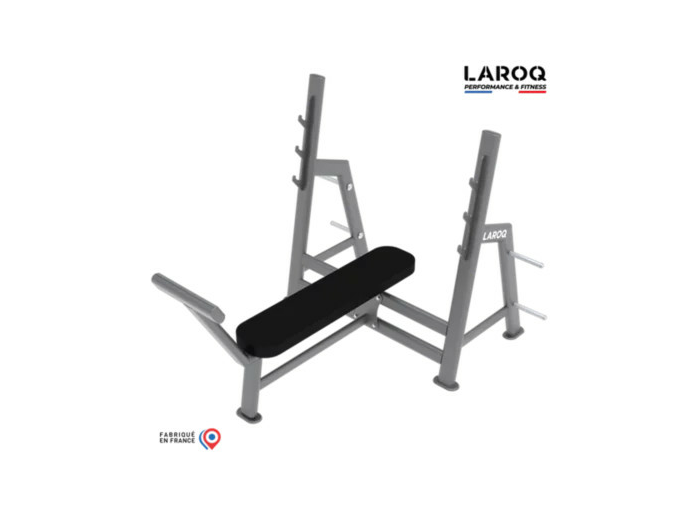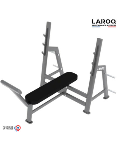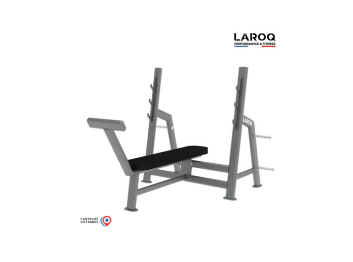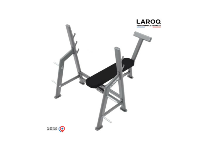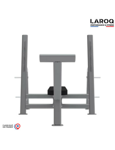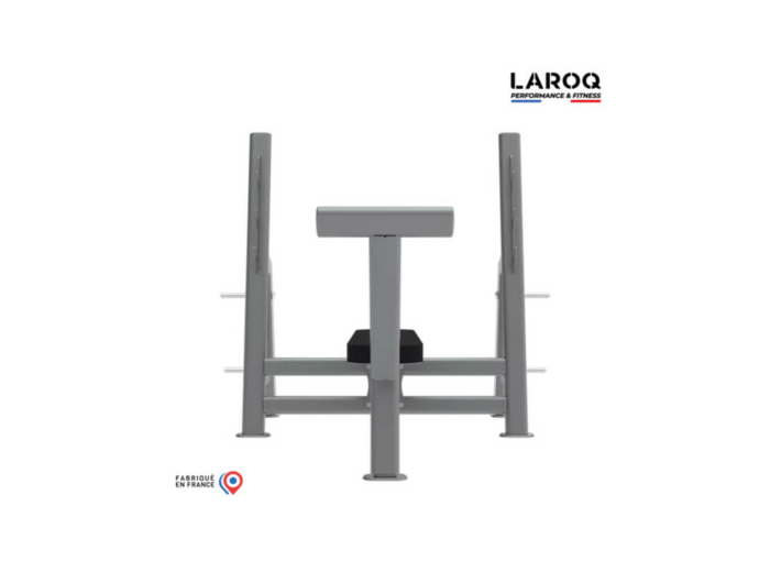 Banc permettant l’exercice de développé en position couchée par extension verticale des bras, sollicitant les grands et petits pectoraux avec participation des triceps. Largeur adaptée aux barres olympiques. Support de barres 3 hauteurs. 4 épis repose-disques Ø 51 mm (Ø 28 mm sur demande), charge maximum de 80 kg par épi. Dimensions : 195,50 x 153,50 x 137 cm, 85 kg. Garantie : 5 ans. →Fiche Technique