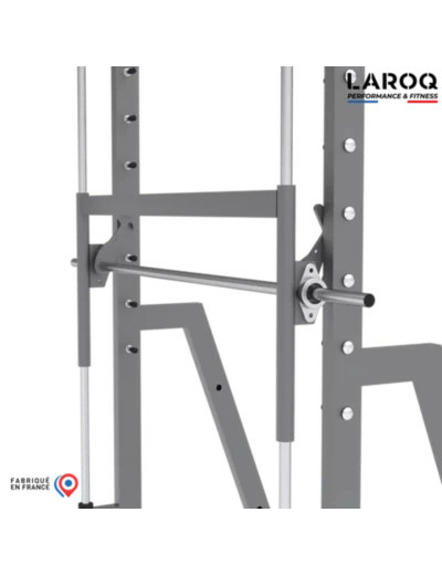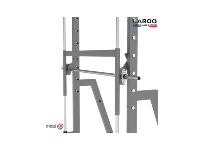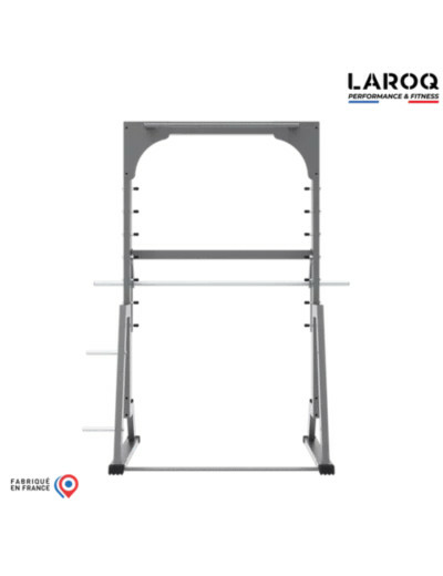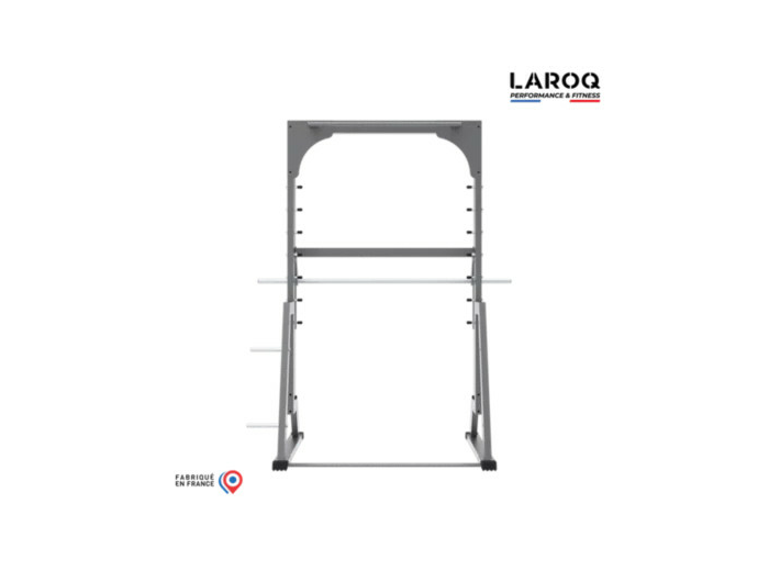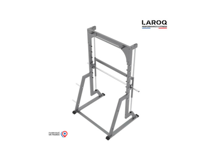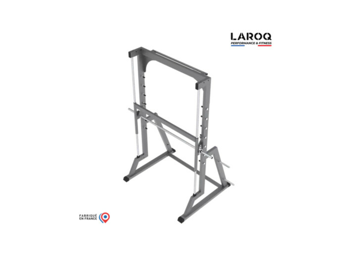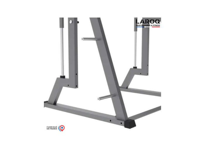 Banc permettant différents exercices selon la position adoptée. Travail des squats et/ou des mollets en position debout. Livré avec une barre. Épis repose-disques Ø 51 mm (Ø 28 mm sur demande). Dimensions : 113,5 x 170,5 x 219,5 cm, 150 kg. Charge maximum : 160 kg. Garantie : 5 ans. →Fiche Technique