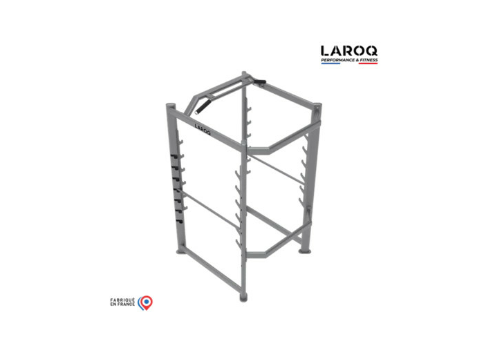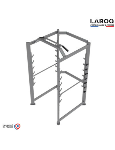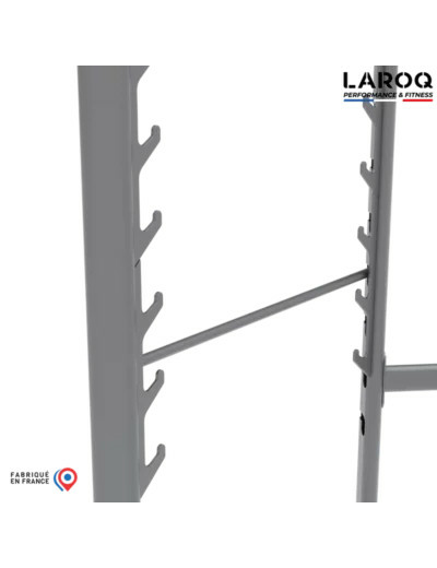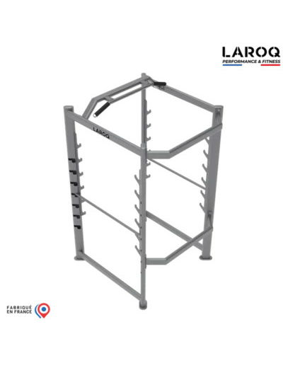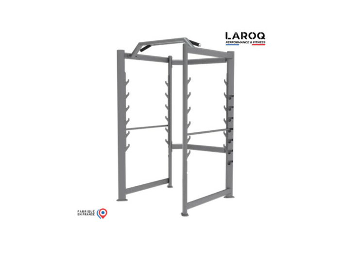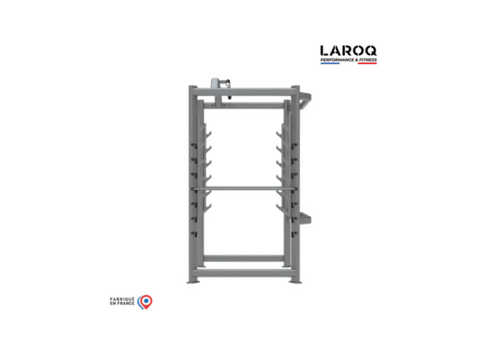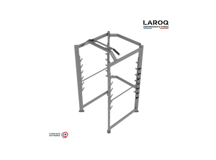 Cage permettant tous les exercices des membres inférieurs en toute sécurité. 2 barres de sécurité réglables en acier. 6 positions pour barres espacées de 17,5 cm. Hauteur réglable de 73 cm à 161,5 cm. Barres de traction. Dimensions : 128 x 119 x 212 cm, 100 kg. Garantie : 5 ans. →Fiche Technique