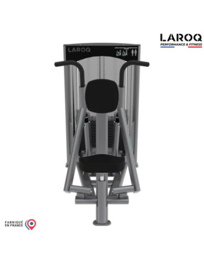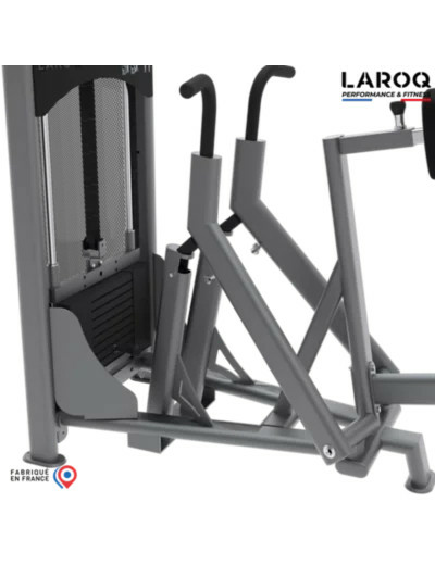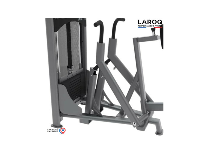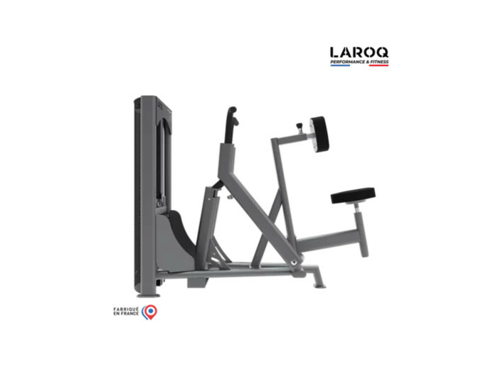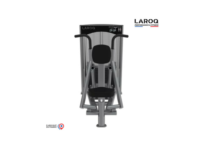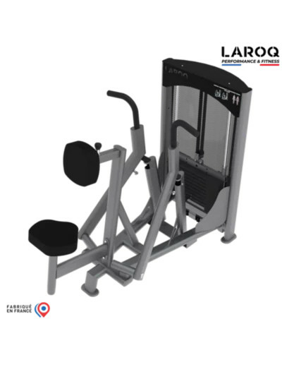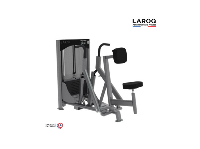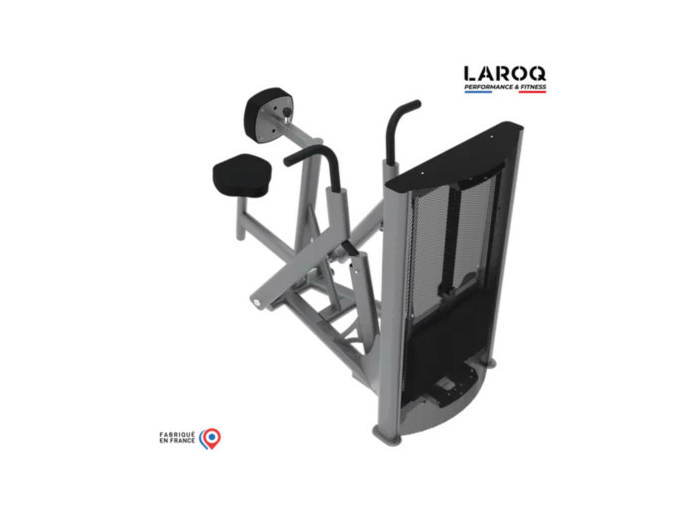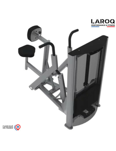 Sollicitation des grands dorsaux avec participation des rhomboïdes par extension arrière des bras. Charge automatique de 80 kg. Transmission de la charge par sangle haute résistance. Réglage de la charge de 5 kg en 5 kg à partir de la position de travail. Pictogramme de mouvement et consignes de sécurité inscrits sur la machine. Appui-pieds permettant de sécuriser la position de travail et de protéger la machine. Réglage de l’appui-poitrine + réglage du siège. Bras indépendants. Prise de poignée verticale ou horizontale. Dimensions : 120 x 80 x 180 cm, 230 kg. Poids maximum utilisateur : 150 kg. Garantie : 5 ans. →Fiche Technique