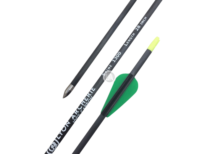Flèches 100% carbonne. Les flèches idéale pour l'initiation ou le tir de loisir. Plusieurs coloris pour l'encohe et les plumes.