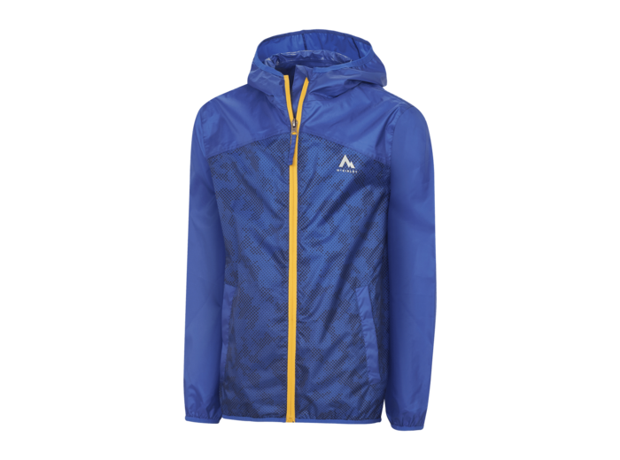Coupe-vent Aquabase® 2000, 100% polyester. Compactable dans la poche et muni d’une capuche intégrée. Tailles : 6 au 16 ans.