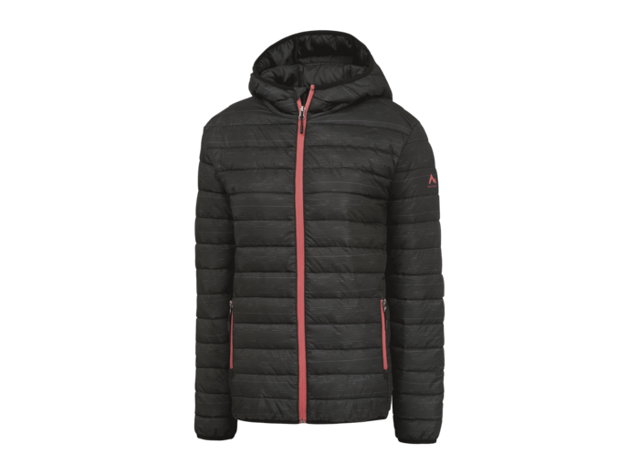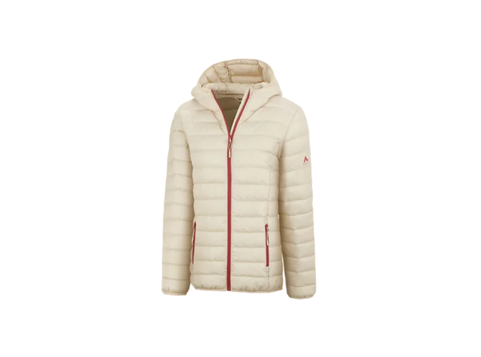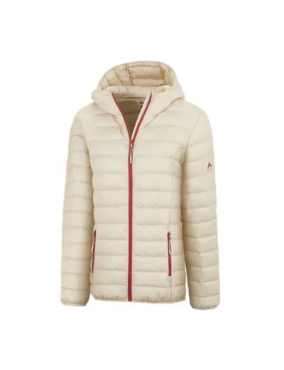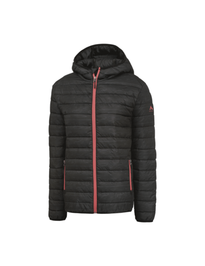 Doudoune 100% polyester. Capuche fixe, 2 poches zippées. Finition déperlante, ourlet et manches élastiqués. Tailles : 34 au 46.