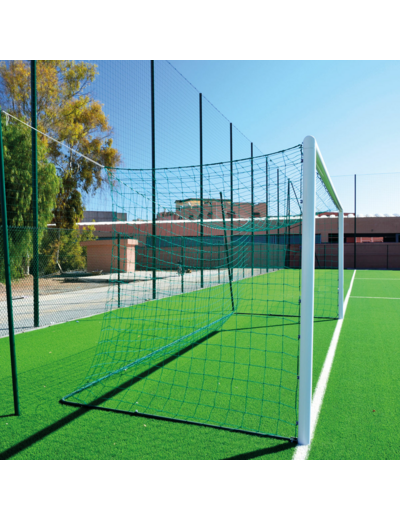 Tube de section plastifié blanc 102 mm, pièces de jonction en aluminium moulées dans les angles de façade, fixation des filets par crochets nylon. Buts livrés sans fourreaux à sceller et couvercles. Dimensions : 6 x 2,10 m. Buts conformes au code du sport et à la norme NF EN 748. Livrés sans filets. Fourreaux en option (réf. FB090611). →Fiche Technique →Notice de montage