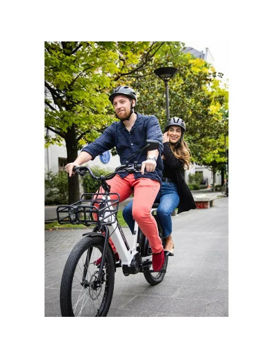 Le porte-bagage arrière dispose d'une capacité de charge de 60kg, et est équipé d'un coussin confortable, de repose-pieds intégré au cadre, ainsi qu'une poignée de maintien accrochée à la selle conducteur. Ce biplace exceptionnel est l'idéal pour les balades à deux ou les trajets en ville.