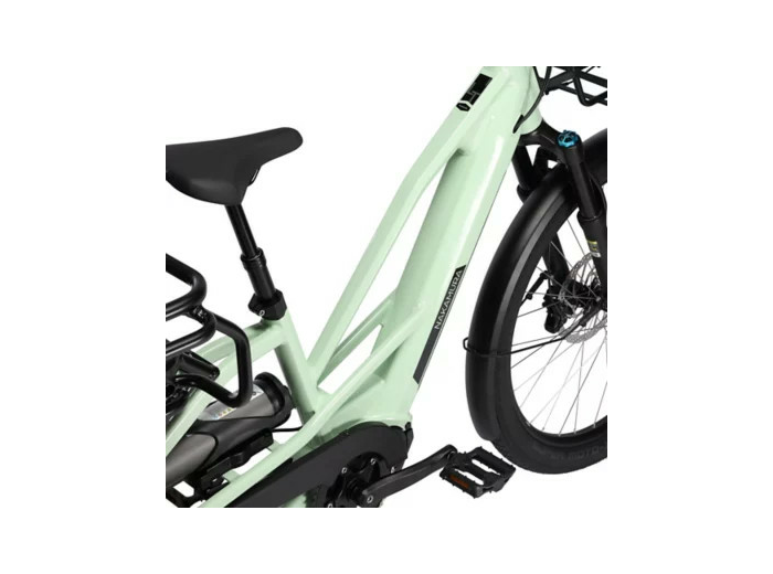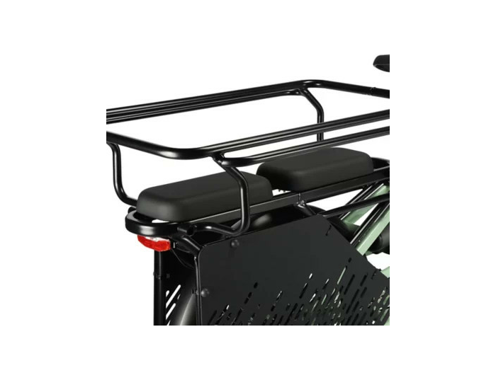 Le porte-bagage arrière (charge max. 80Kg) est équipé de 2 sièges indépendants pouvant être démontés sans outils. Sous ces sièges se trouvent 2 systèmes d’accroche MIK® HD sur lesquels vous pouvez fixer des porte-bébés, des paniers ou des sacoches compatibles MIK®.