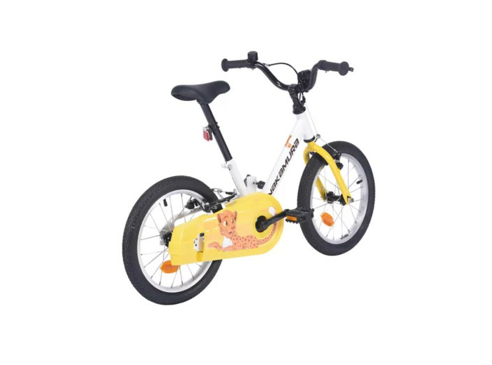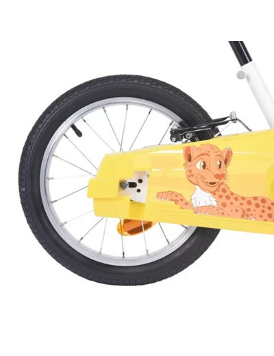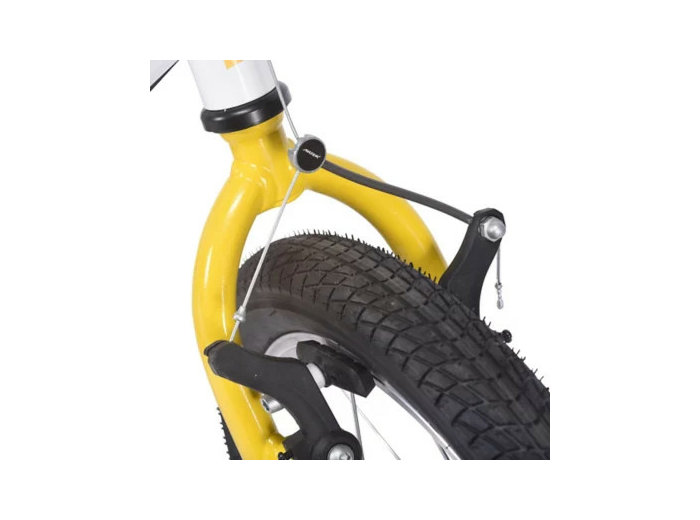 La sécurité est assurée par le carter intégral qui évite au petit cycliste de se prendre les pieds dans la chaîne et par les freins V-Brake commandés par des poignées adaptées aux petites mains pour assurer un freinage puissant.