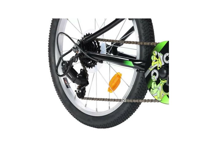 Equipé d’une transmission 6 vitesses, il permet d'aborder les montées et les descentes dans les meilleures conditions. Ce VTT enfant offre aussi le meilleur du freinage grâce à ses freins avant et arrière V-Brake puissants et précis.