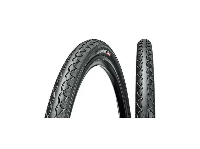 Carcasse renforcée empêchant la pénétration d’objets tranchants. Pneu à usage mixte : chaussée mouillée ou sèche. La bande de renfort centrale augmente le longévité du pneu tout en procurant un confort d’utilisation. 80% caoutchouc, carcasse nylon.