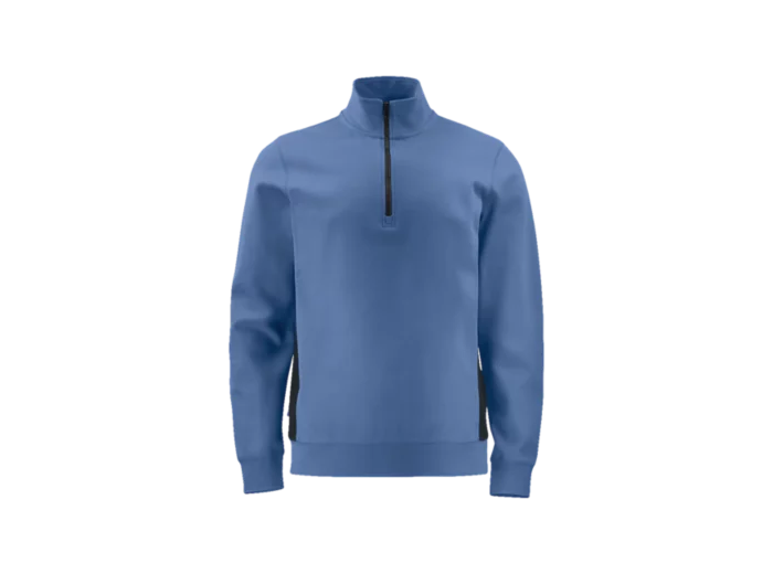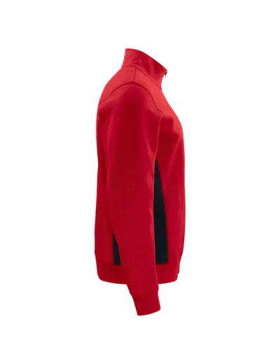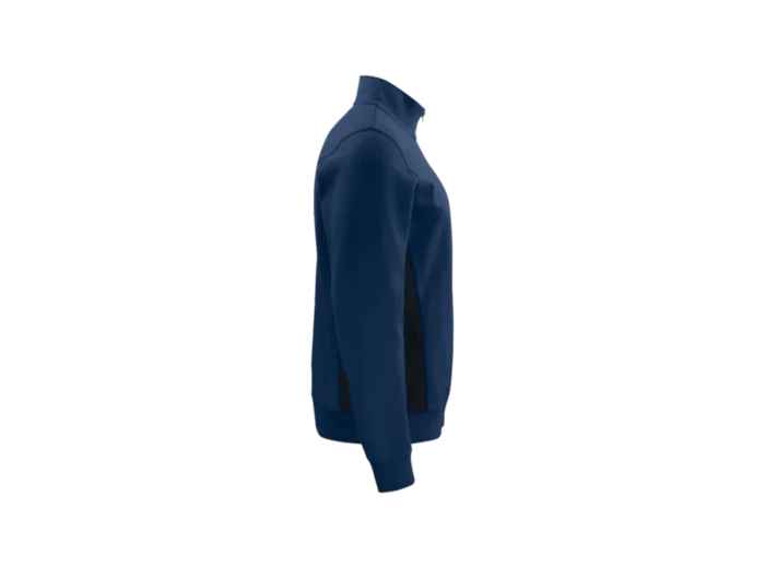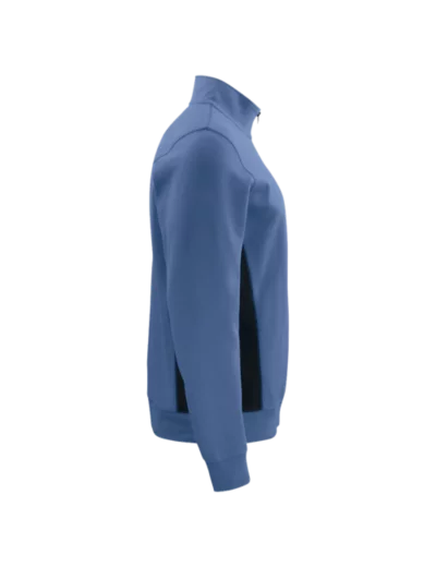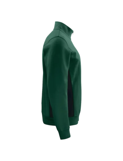 Sweatshirt col zip - bandes latérales contrastées - Intérieur non gratté - bords côtes 1X1 col / poignets + taille - Lavage 60°.
