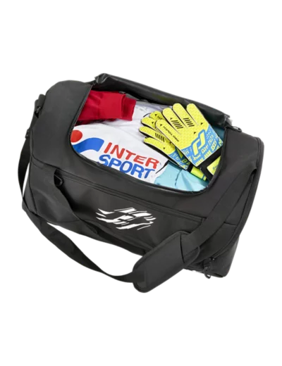 Sac de sport 100% polyester. Ergonomique, il comporte 3 compartiments avec poches latérales pour transporter l'équipement des joueurs de sports collectifs (chaussures, tenues, ballons, accessoires, etc..).