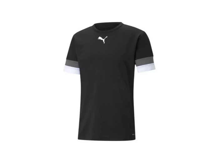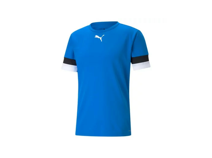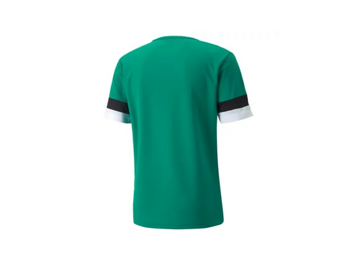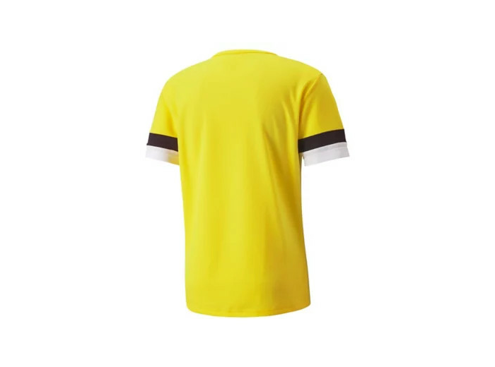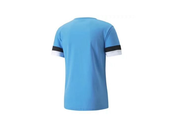 Maillot de foot 100% polyester. Col rond avec coupe classique. Bandes ajourées noires et blanches en bout de manches.