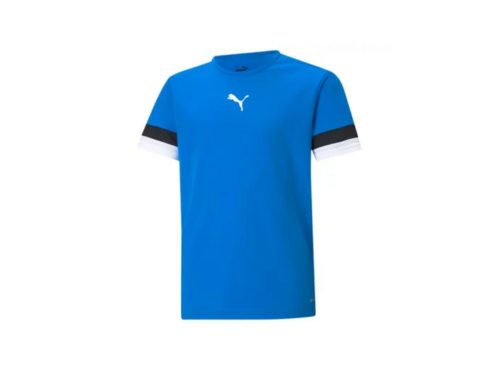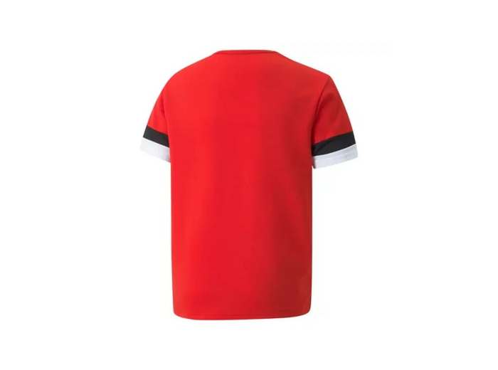 Maillot de foot 100% polyester. Col rond avec coupe classique. Bandes ajourées noires et blanches en bout de manches.