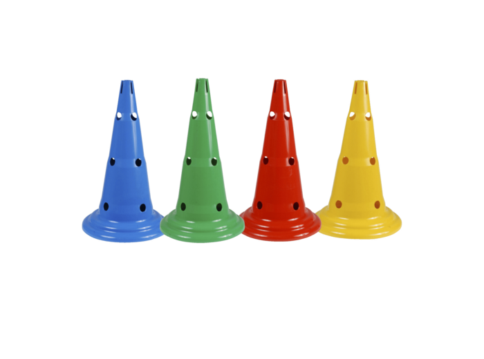 Cône PVC résistant avec base très stable pouvant être couplé avec des cerceaux plats et des jalons. Idéal pour créer des parcours d'obstacles ou des cibles en milieu scolaire et sportif. Existe en 30 cm (8 trous en 2 hauteurs) et en 50 cm (12 trous en 4 hauteurs).