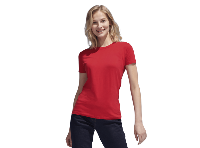Tee-shirt à col rond 100% coton semi-peigné, 190 g/m². Certifié Standard 100 by OEKO-TEX®. La référence grâce à sa tenue parfaite. Junior : 2 ans au 12 ans (13 coloris). Femme : S au 3XL (36 coloris). Homme : XS au 5XL (46 coloris). Disponibilité des tailles selon coloris.