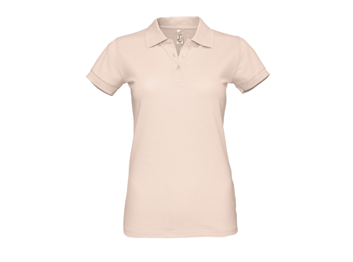 POLO FEMME 100% coton peigné Ringspun Col et bas de manches en côte 1x1 Bande de propreté au col Manches courtes Patte de col 3 boutons nacrés ton sur ton Coupé cousu Coupe cintrée Bouton de rechange dans couture intérieure côté