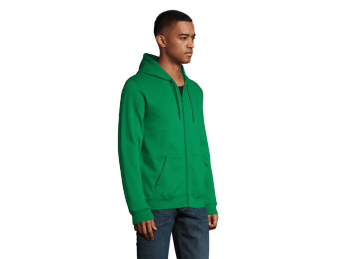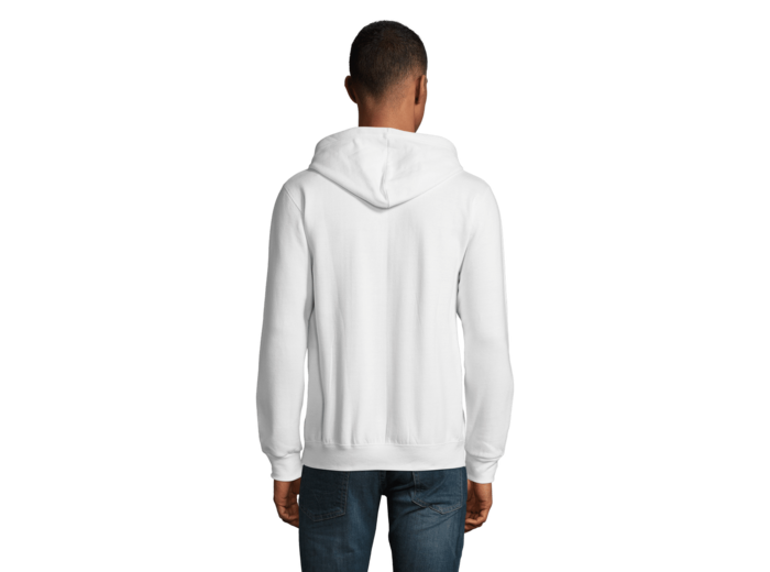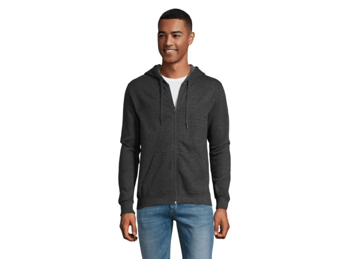 VESTE ZIPPÉE À CAPUCHE UNISEXE 50% coton Ringspun - 50% polyester Bord côte bas de vêtement et bas de manches Manches montées 2 poches kangourou Capuche avec cordon de serrage ton sur ton Coupe droite Tubulaire