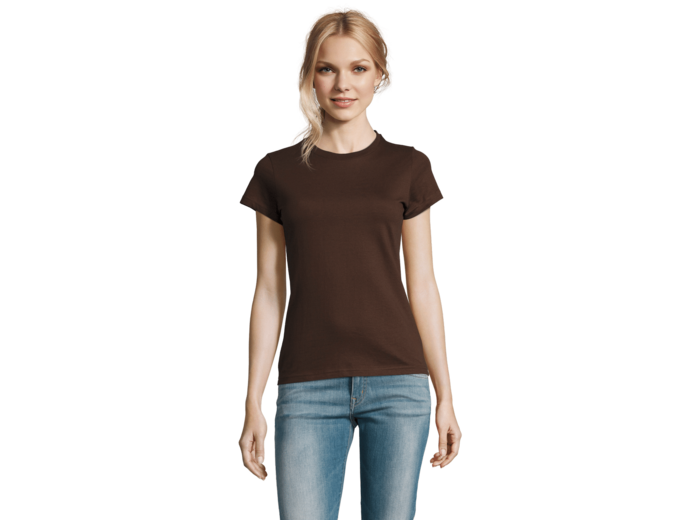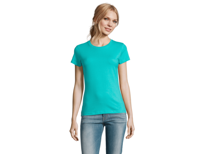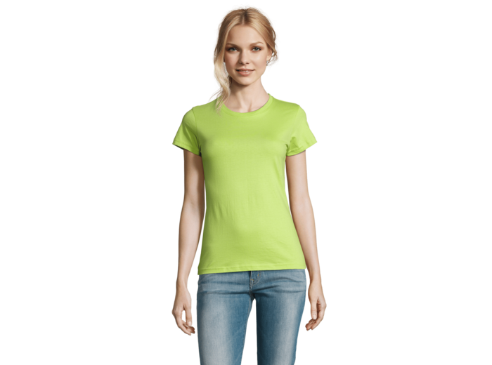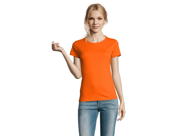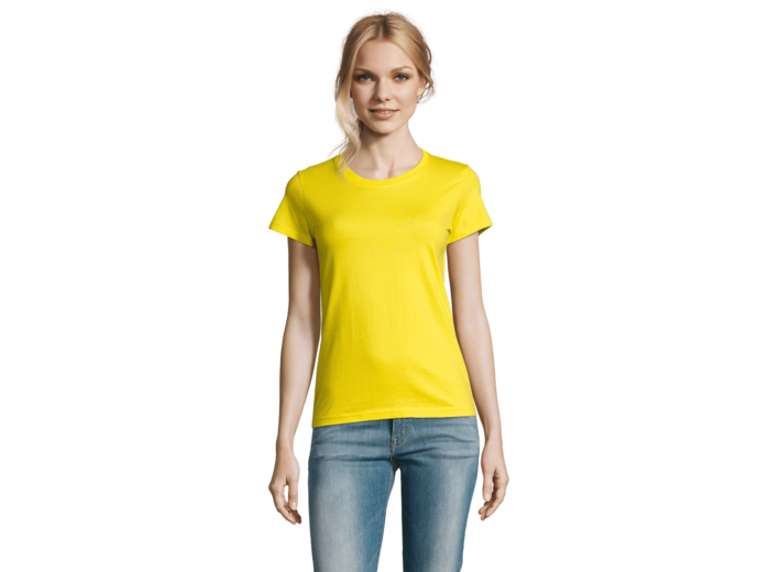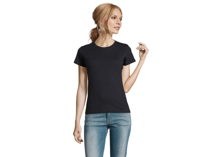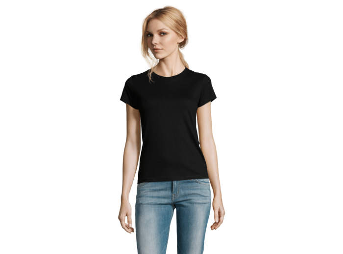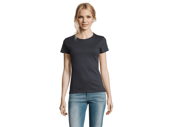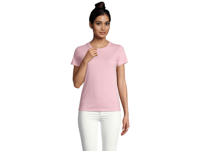 TEE-SHIRT FEMME COL ROND 100% coton semi-peigné Ringspun Bande de propreté au col Col avec bord côte élasthanne Manches courtes Coupé cousu