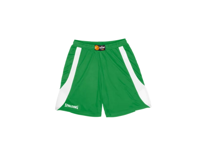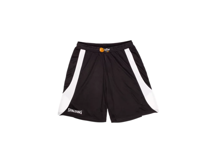 Short 100% polyester, 160 g/m2. Maille serrée, légère et respirante. Ceinture ourlet contrastée. Taille élastiquée avec cordon de serrage. Logo Spalding.
