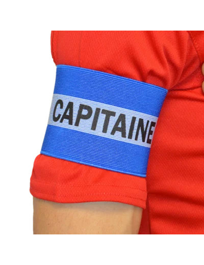 Brassard élastique "Capitaine". Disponible en 2 coloris : Bleu/Blanc et Rouge/Blanc et 2 tailles : Junior et Senior. Largeur 8cm. Livré en packaging individuel facile à mettre en rayon